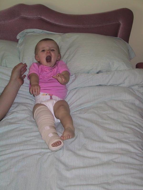 Honest officer, she fell off 2 steps and broke her leg.
