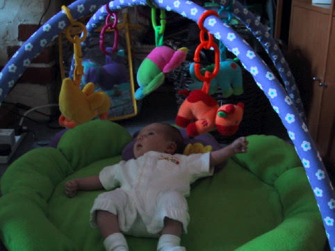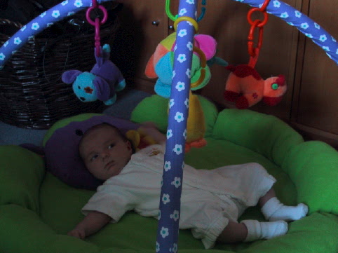 Trapped in her baby Gym, Emily realises the bars might just be wide enough to make an escape bid, and grins cunningly